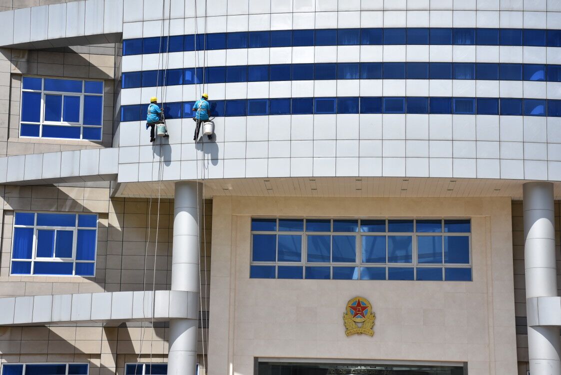 高空作業(yè)是清洗公司工作的難點(diǎn),危險(xiǎn)性大,但同時(shí)又是收入可觀的業(yè)務(wù)項(xiàng)目,一幢高樓,風(fēng)吹雨打,不清洗是不行的,只有及時(shí)做好清洗工作才能避免或減少外墻表面損壞。 奧美林專(zhuān)業(yè)外墻粉刷,室內(nèi)外粉刷等,高難度粉刷價(jià)格一般在5元——20元,看施工現(xiàn)場(chǎng)在制定方案及工程款。 一、外墻清洗的方式 目前外墻清洗主要有兩種方式:吊板方式和擦窗方式。 吊板方式是用吊繩、吊板將人吊到工作位置進(jìn)行清洗。這種聲式比較簡(jiǎn)單,成本也低,只要工人身體素質(zhì)好、繩子連接牢固就可以進(jìn)行,一般的大樓都可以用這種方式進(jìn)行清洗,但是這種方式的操作必須使安全措施到位,否則危險(xiǎn)性很大,造成傷亡事故的都是因安全措施不到位造成的。 二、外墻清洗的條件 1、氣候條件:外墻清洗必須要在良好的氣候條件下進(jìn)行,風(fēng)力應(yīng)小于4級(jí),4級(jí)以上停止工作。因此,工作前應(yīng)測(cè)定風(fēng)力,尤其是高空風(fēng)力。另外,下雨、下雪、有霧、能見(jiàn)度差以及高溫(35℃以上)和低溫(0℃以下)等條件下都不適合進(jìn)行外墻清洗。 2.人員條件:為了貫徹執(zhí)行國(guó)家安全法規(guī),確保工人人身安全及設(shè)備正常運(yùn)轉(zhuǎn),規(guī)定:高空操作者必須是年滿(mǎn)18周歲的男性公民,并經(jīng)過(guò)身體檢查和安全技術(shù)培訓(xùn),經(jīng)考試合格方可作業(yè),工人上崗前不得飲酒,有感冒等身體不適癥狀就暫停高空作業(yè)。 3、設(shè)備條件:外墻清洗的設(shè)備必須處于良好的工作狀態(tài),凡吊板有發(fā)毛、部分繩股漸裂等現(xiàn)象應(yīng)立即更換新繩。 三、 安全操作規(guī)程 l、上班前必須認(rèn)真檢查機(jī)械設(shè)備、用具、繩子、坐板、安全帶有無(wú)損壞,確保機(jī)械性能良好及各種用具無(wú)異?,F(xiàn)象方能上崗操作。 2、操作繩、安全繩必須分開(kāi)生根并扎緊系死,靠沿口處要加墊軟物,防止因磨損而斷繩,繩子下端一定要接觸地面,放繩人同時(shí)也要系臨時(shí)安全繩。 3、施工員上崗前要穿好工作服,戴好安全帽,上崗時(shí)要先系安全帶,再系保險(xiǎn)鎖(安全繩上),爾后再系好卸扣(操作繩上), 同時(shí)坐板扣子要打緊,固死。 4、下繩時(shí),施工負(fù)責(zé)人和樓上監(jiān)護(hù)人員要給予指揮和幫助。 5、操作時(shí)輔助用具要扎緊扎牢.以防墜傷人,同時(shí)嚴(yán)禁嘻笑打鬧和攜帶其它無(wú)關(guān)物品; 6、樓上、地面監(jiān)護(hù)人員要堅(jiān)守在施工現(xiàn)場(chǎng).切實(shí)履行職責(zé).隨時(shí)觀察操作繩、安全繩的松緊及絞繩、串繩等現(xiàn)象,發(fā)現(xiàn)問(wèn)題及時(shí)報(bào)告,及時(shí)排除。 7、樓上監(jiān)護(hù)人員不得隨意在樓頂邊沿上來(lái)回走動(dòng)。需要時(shí),必須先系好自身安全繩,爾后再進(jìn)行輔助工作。地面監(jiān)護(hù)人員不得在施工現(xiàn)場(chǎng)看書(shū)看報(bào),更不得隨意觀賞其它場(chǎng)景。并要隨時(shí)制止行人進(jìn)入危險(xiǎn)地段及拉繩、甩繩現(xiàn)象發(fā)生。 8、操作繩、安全繩需移位、上下時(shí),監(jiān)護(hù)人員及輔助工人要一同協(xié)調(diào)安置好,不用時(shí)需把繩子打好捆緊。 9、施工員要落地時(shí),要先察看一下地面、墻壁的設(shè)施,操作繩、安全繩的定位及行人流量的多少情況,待地面監(jiān)護(hù)人員處理、調(diào)整,同意后方可緩慢下降,直至地面。 10、要堅(jiān)持安全第一、文明施工,確保工程服務(wù)質(zhì)量。 11、不準(zhǔn)亂拿甲方或客戶(hù)的物品,不得損壞甲方或客戶(hù)的各種設(shè)施。 12、高空作業(yè)人員和現(xiàn)場(chǎng)監(jiān)護(hù)人員必須服從施工負(fù)責(zé)人的統(tǒng)一指揮和統(tǒng)一管理。
